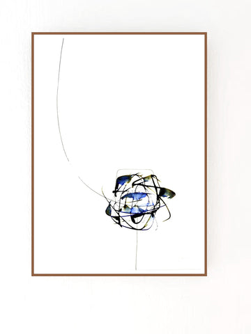 Cuando adquirimos la primeras obras de Cristina Ripper lo dijimos: debemos ser políticamente correctos pero no en este caso. (Primera de la serie black, blue grey and brown) Esta es nuestra serie de obras preferidas de Cristina. Quizás porque se atreve a transformar su famosa línea en curva. Quizás porque decide convertir casi todo el lienzo en blanco y centrar el centro del cuadro en el extremo inferior, con ese atrevimiento de Eden, otro de nuestros artistas.