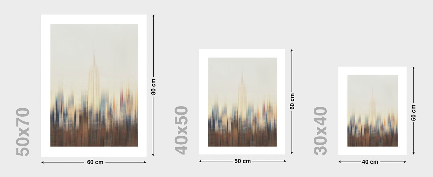 Tamaño: 50 cm x 70 cm / 40 x 50 cm / 30 x 40 cm. Compatibles marcos estándar.