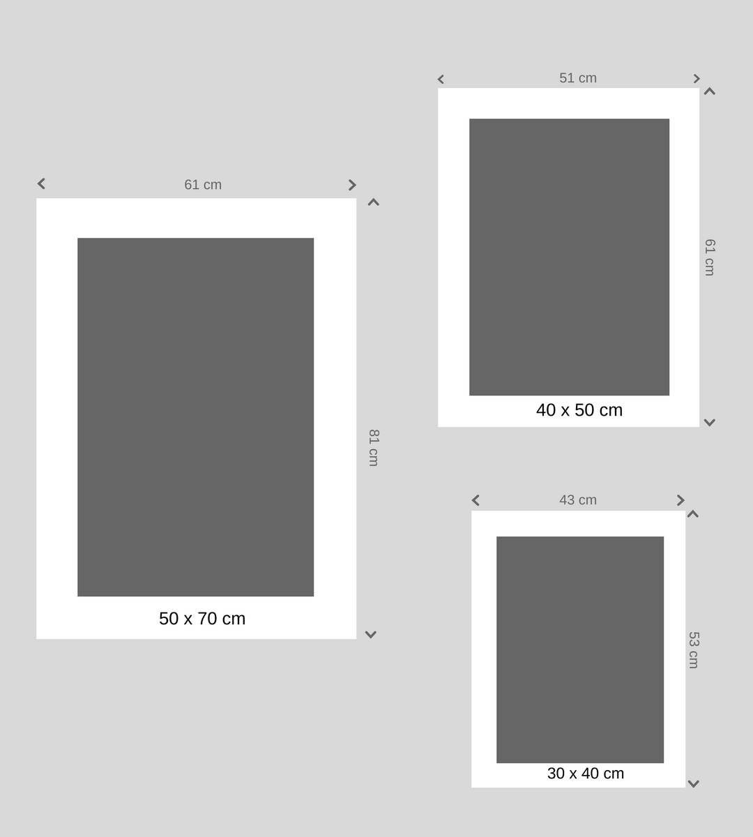 Tamaño: 50 cm x 70 cm / 40 x 50 cm / 30 x 40 cm. Compatibles marcos estándar.