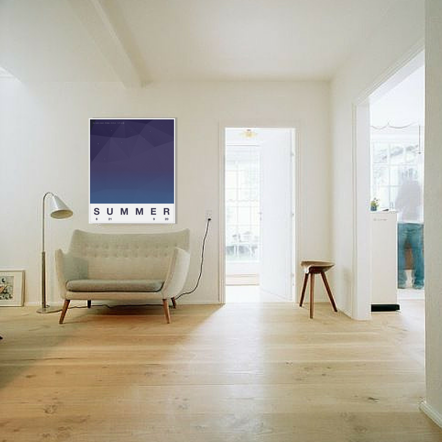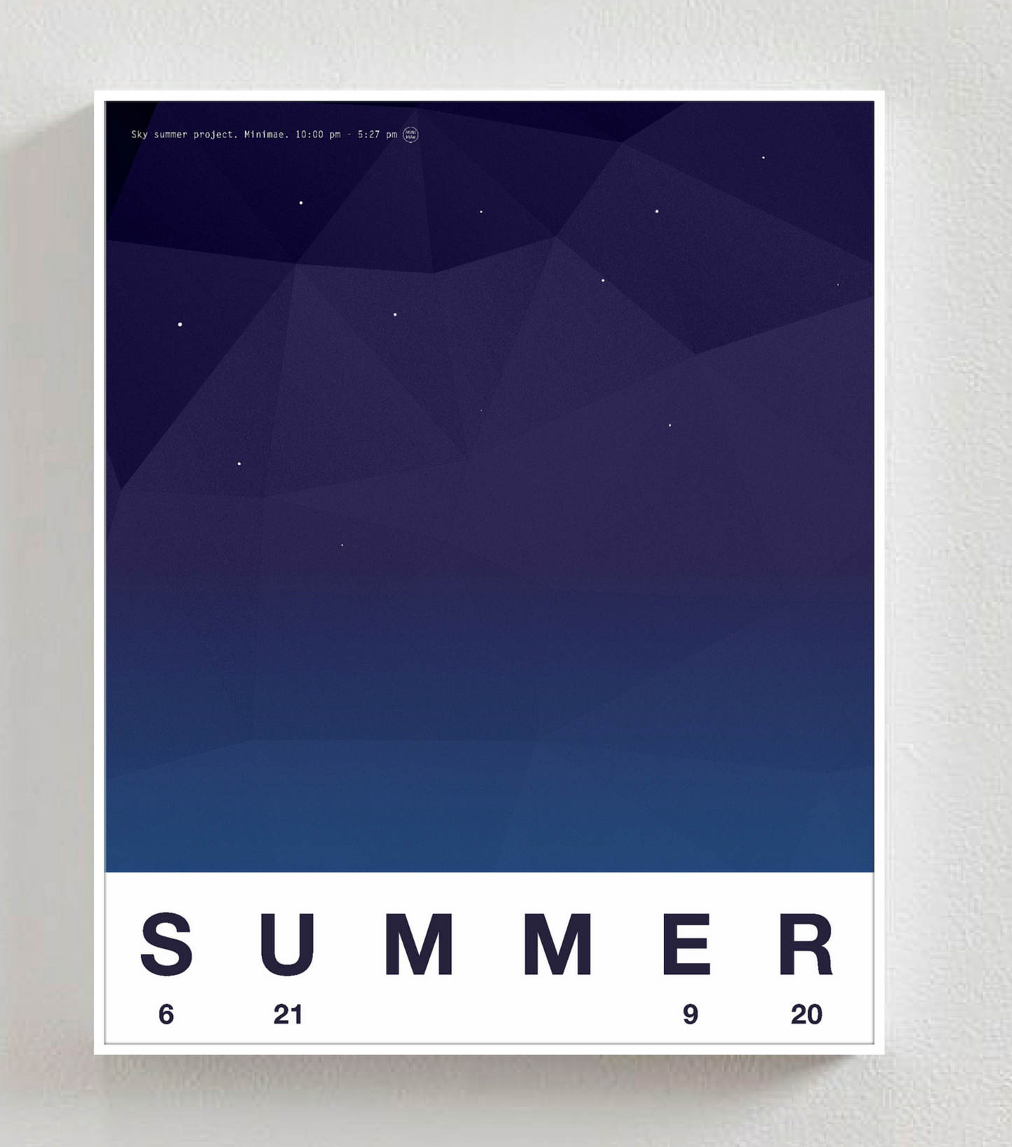 Minimae interpreta el verano a través de su cielo. Es una interpretación subjetiva, claro. Nuestros diseñadores no pretenden obtener los colores perfectos si no cómo ven ellos esos colores. Y además lo hacemos a lo grande (90 cm x 110 cm), como su cielo.
