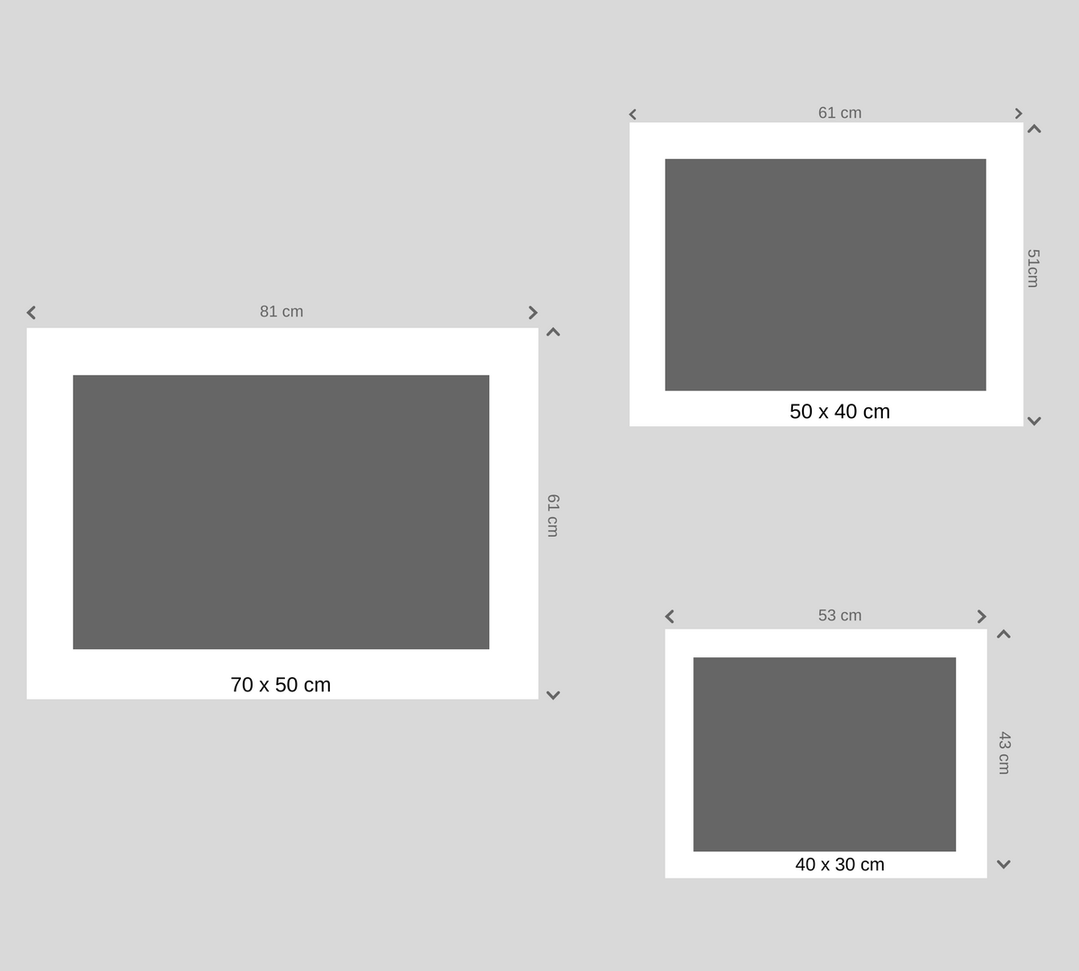 Tamaño: 70 cm x 50 cm / 50 x 40 cm / 40 x 30 cm. Compatibles marcos estándar.