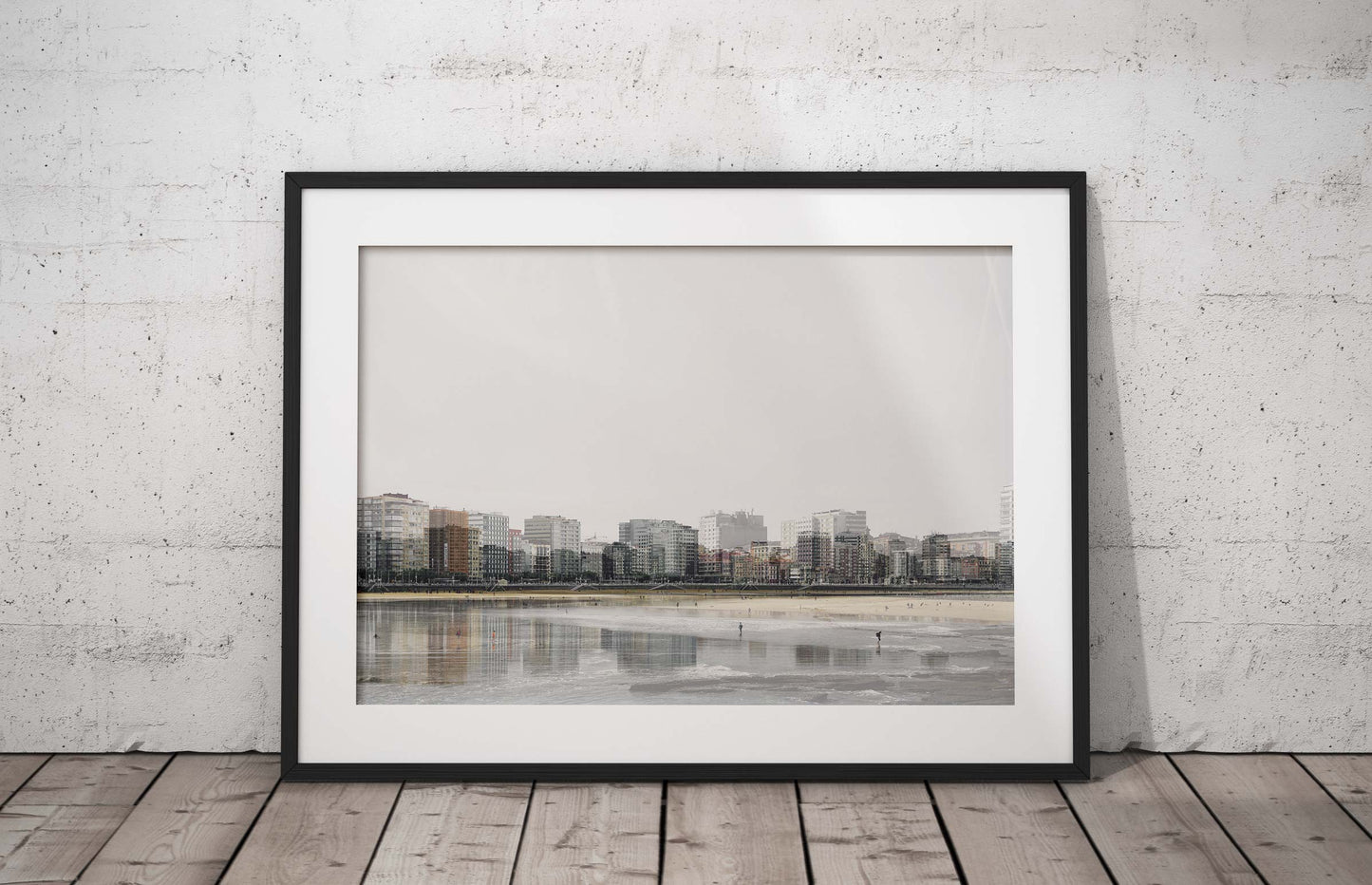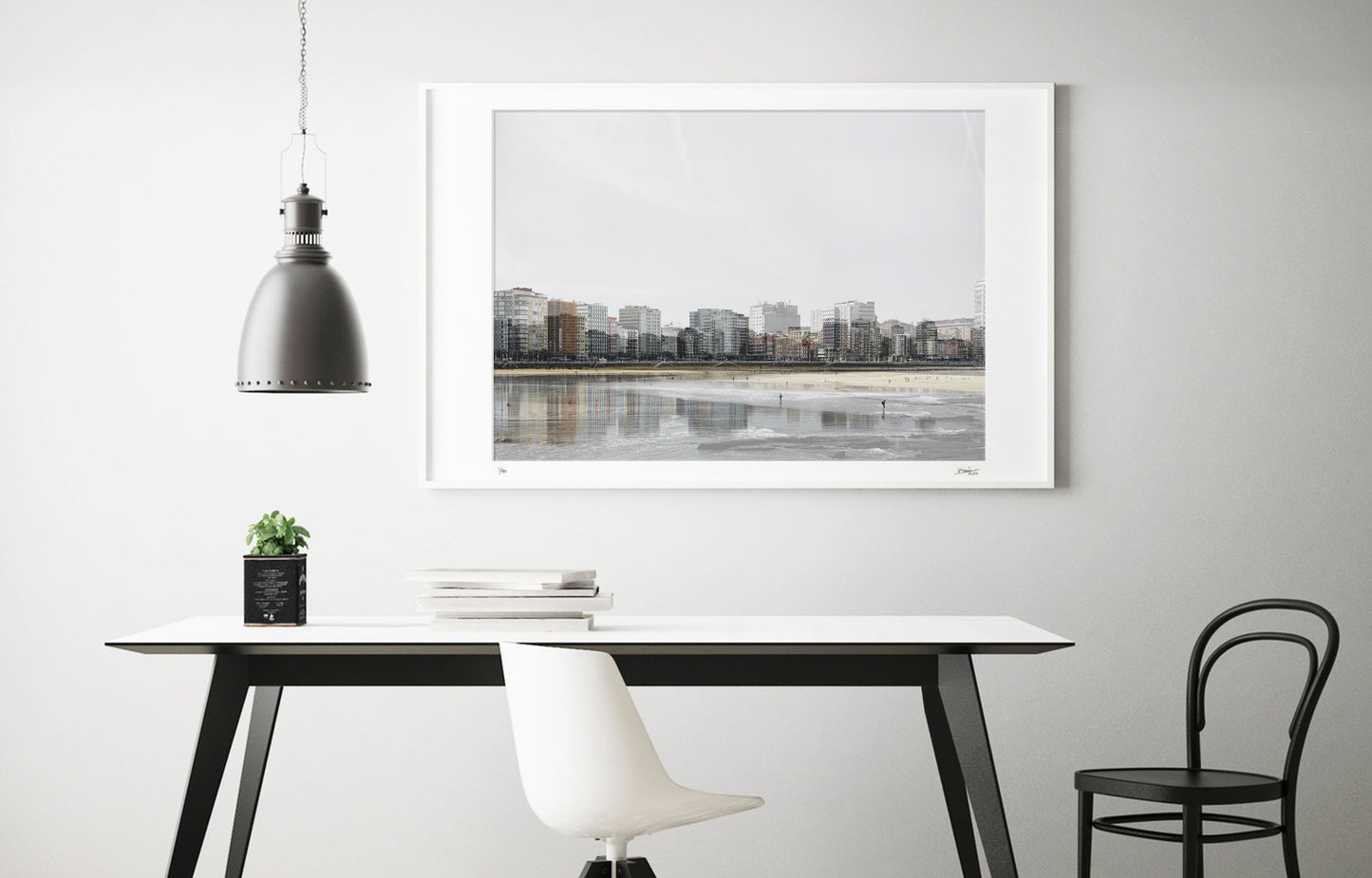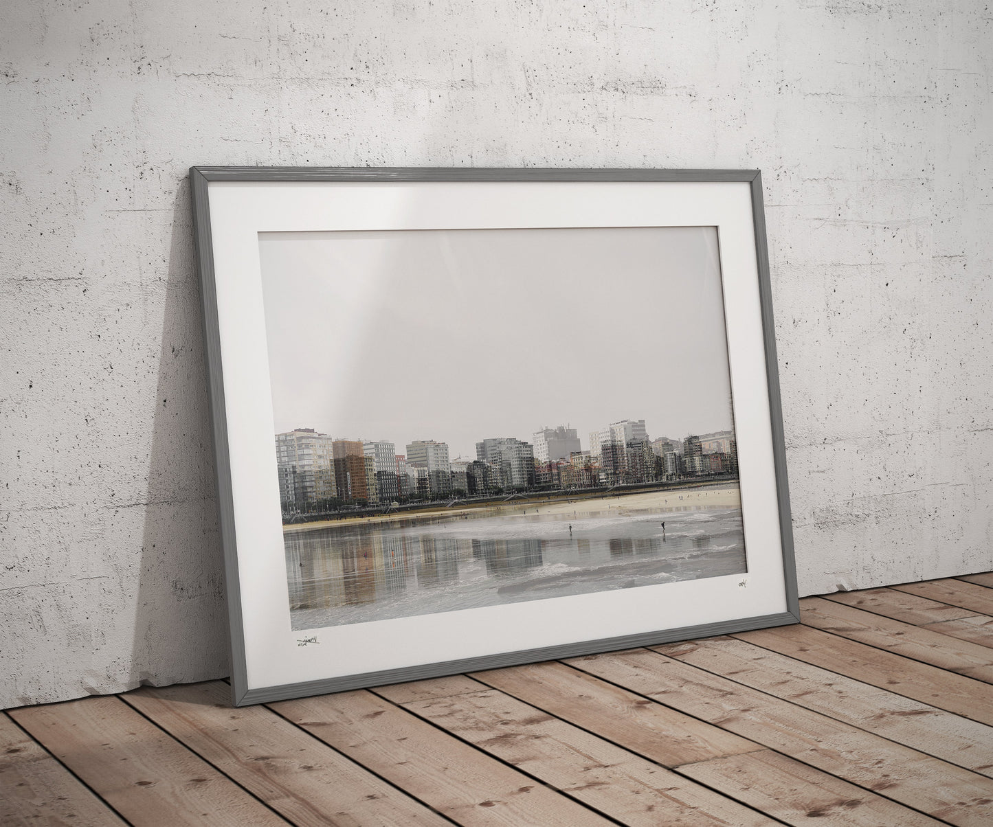 Inconfundible imagen de la playa de San Lorenzo que lo tiene todo de ella y lo tiene todo de Lizuáin: superposiones fotográficas, efecto pictórico, ambientes vaporosos....